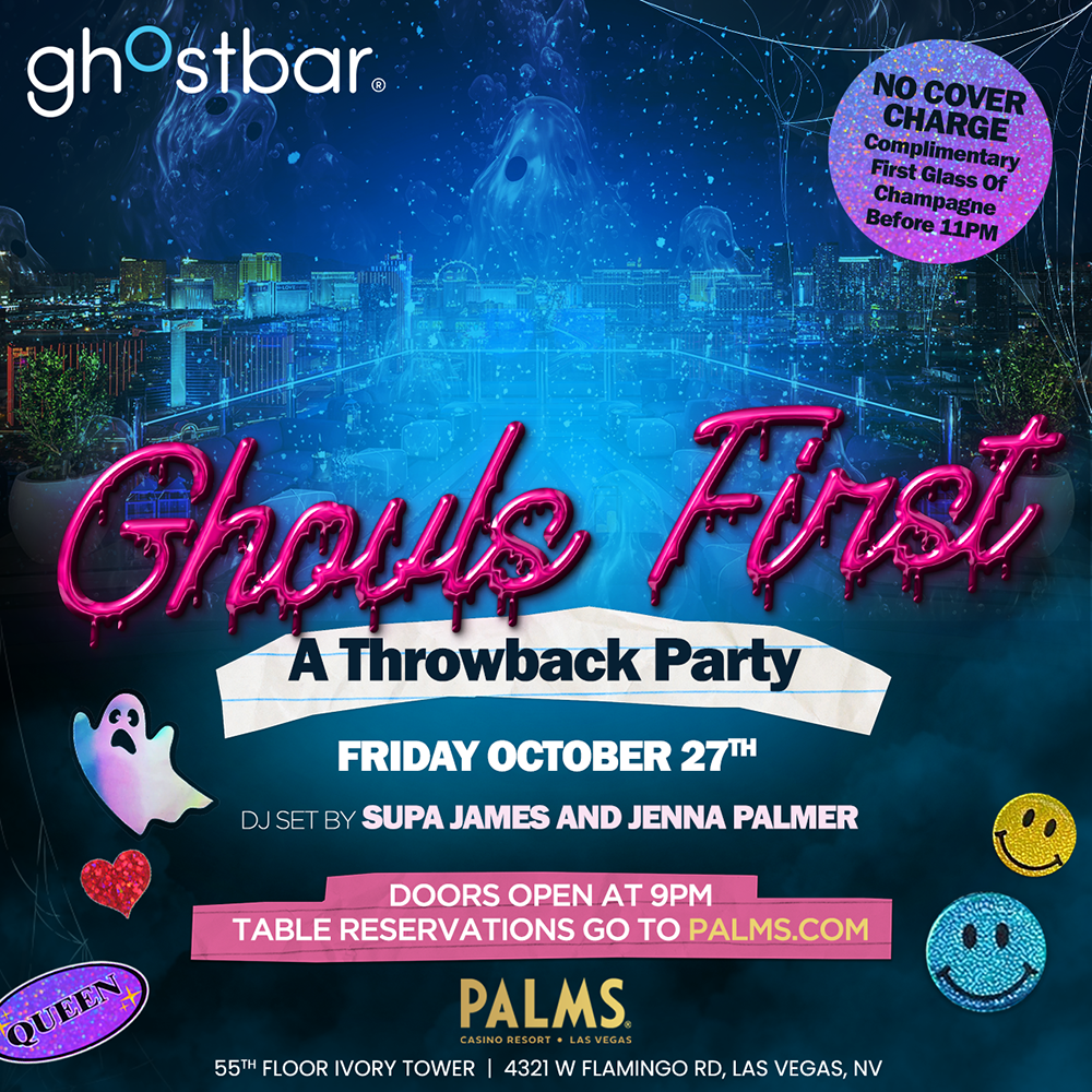Ghostbar and the Palms Hotel and Casino Resort presents "Ghouls First" Fridays. Doors open at 9pm with complimentary admission for everyone and all ladies will receive their first glass of champagne FREE before 11pm.