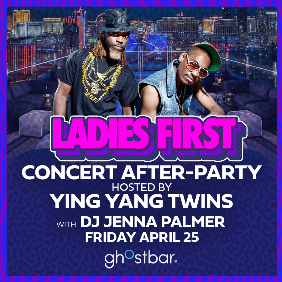 Ghostbar and the Palms Hotel and Casino Resort presents "Ladies First" Fridays. The Ying Yang Twins will be hosting the evening's activities. Doors open at 9pm with complimentary admission for everyone and all ladies will receive their first glass of champagne FREE before 11pm.