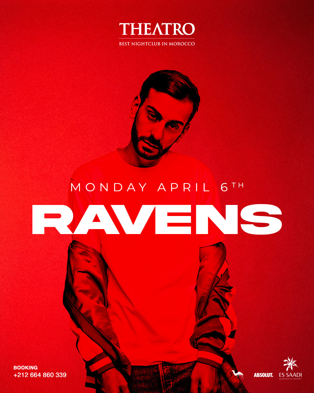 Born in Paris, RAVENS has been setting dancefloors on fire since the age of 15. His signature: tribal Tech House laced with Latin heat, from Paris (Palais de Tokyo, Bridge) to Lio Ibiza, Stockholm, Miami and New York. Official remixes for Alesso, releases on Sony, BMG, Make The Girl Dance… RAVENS lands in Marrakech for two nights at Theatro.