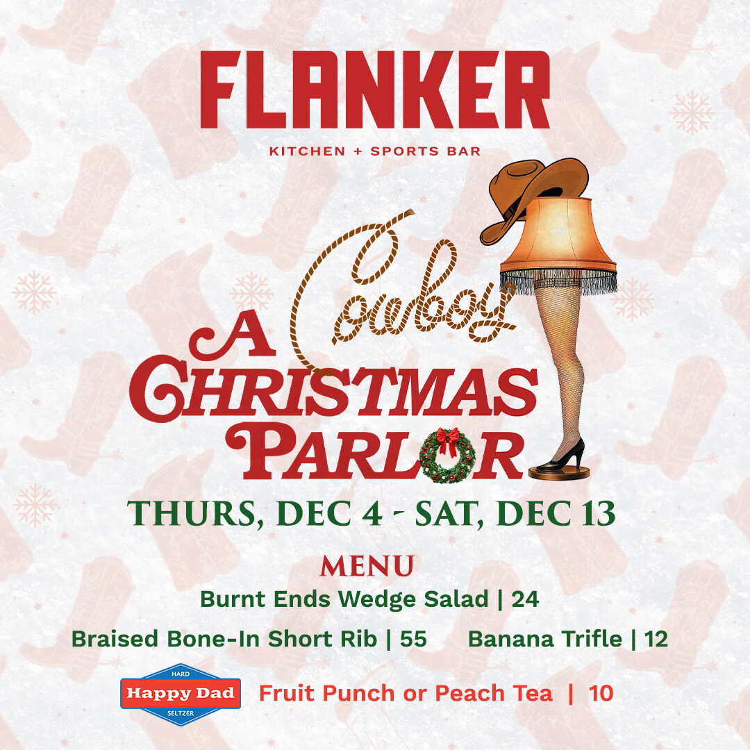 Saddle up. NFR week is taking over Flanker! From December 4 –13, we're celebrating Rodeo World with special dishes and drinks made for long days and late nights. Dig into our braised short rib, the burnt edge wedge salad, and more rodeo-inspired features, paired with ice-cold Happy Dad and all your favorite pours. With big screens, a high-energy atmosphere, and the best food in town, Flanker is your home base for every ride, every score, and every night of the National Finals Rodeo. Boots welcome. Good times guaranteed.