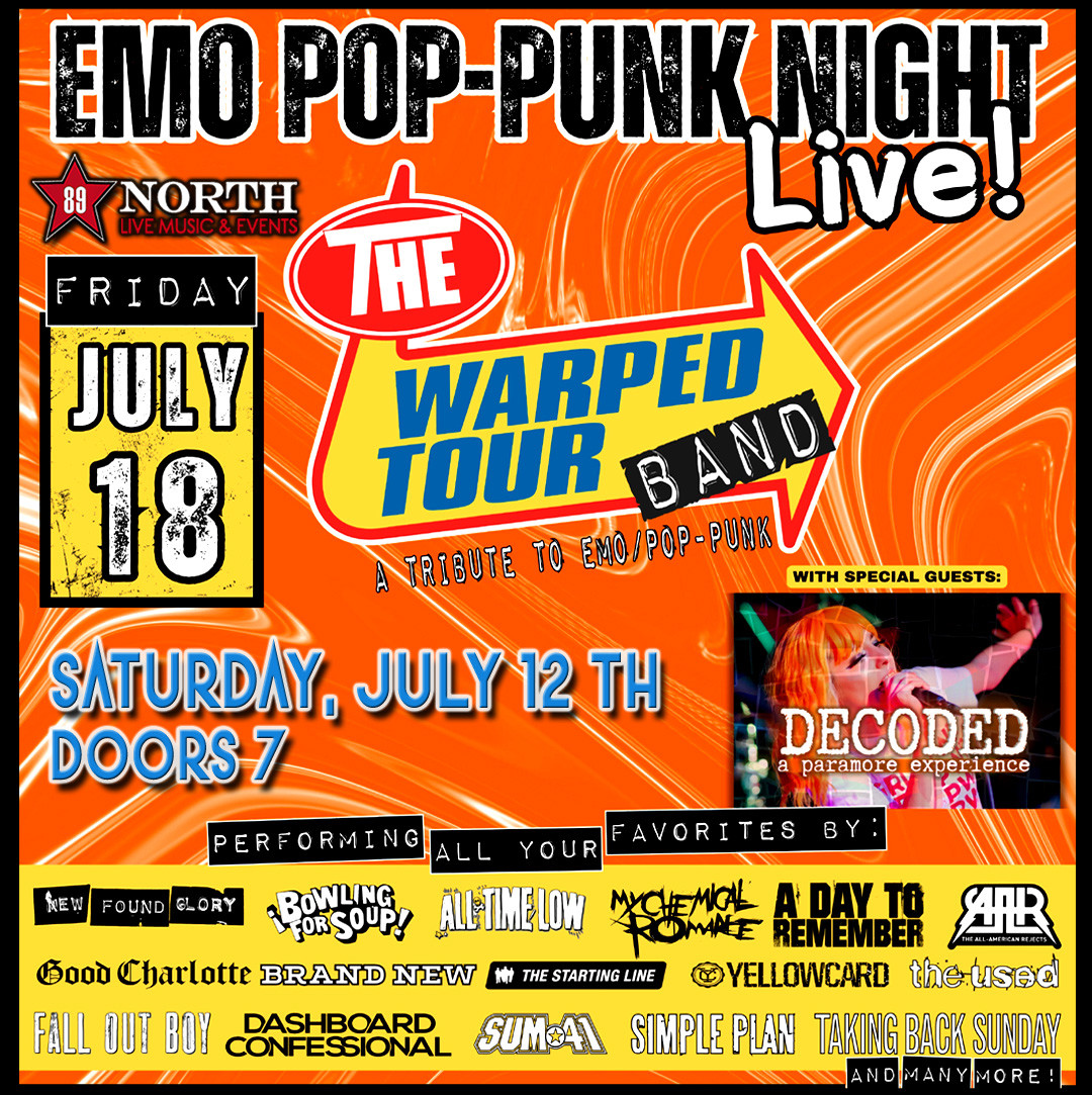The Warped Tour band - Performing all of your favorite pop-punk and emo songs from the late 90's through the new millennium!