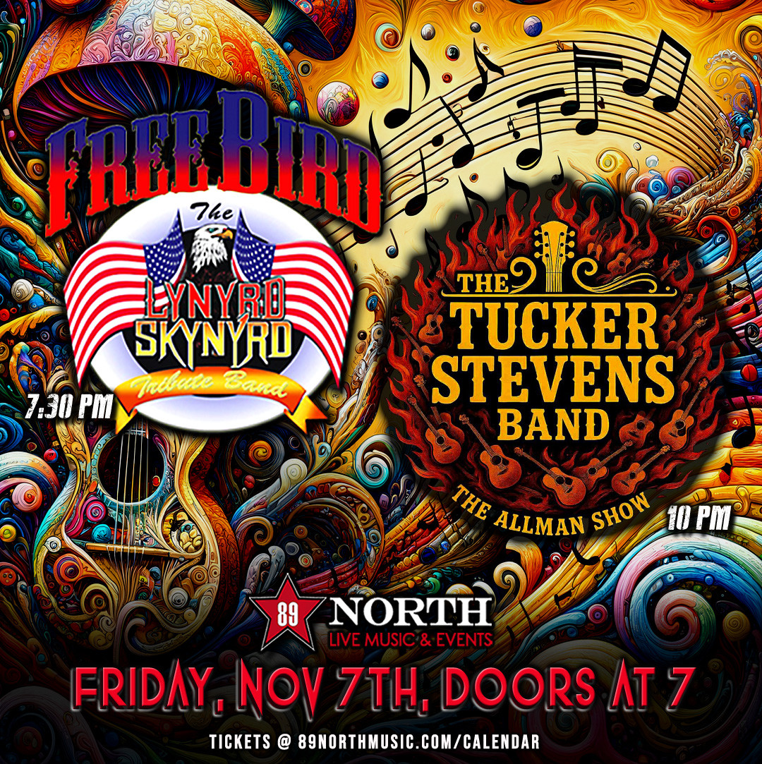 THIS EVENT IS 21 & OVER. ADVANCED TICKET SALES CLOSE AT 5PM THE DAY OF THIS EVENT. TICKETS ARE AVAILABLE FOR PURCHASE AT THE DOOR. PRICES SHOWN ARE FOR ADVANCED TICKET SALES ONLY. TICKET PRICES AT THE DOOR WILL BE HIGHER. Freebird - Formed in September of 2002, "Freebird set out to recreate the original studio and live recordings of Lynyrd Skynyrd. From the beginning, the band felt the need to deliver the highest quality of music as opposed to trying to look like the original band. The Tucker Stevens Band - doing an all Allman Brothers Show.