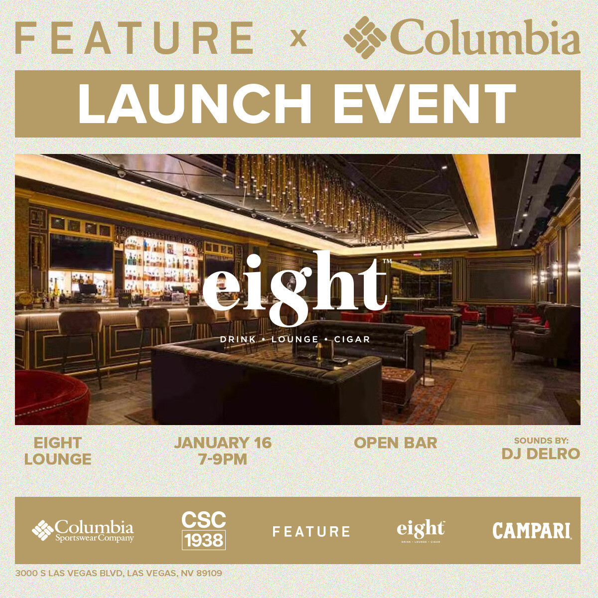 Join Feature Sneaker Boutique and Columbia Sportswear at Eight Lounge for the launch of the CSC 1933 collection. Walk into Eight Lounge and experience a sophisticated and modern cigar environment. More than 250 premium cigars are on hand, giving Eight at Resorts World the edge in catering to any cigar enthusiast or curious newcomer. Explore the space and fall into the vast selection of smokes and limited-edition cigars. Eight is sexy and energetic, seamlessly transitioning from a classic daytime cigar bar to a lively "cigar-friendly" lounge in the evening. You can pair your tobacco with time-honored and modernized cocktails to set the mood. The cigars are only the beginning.