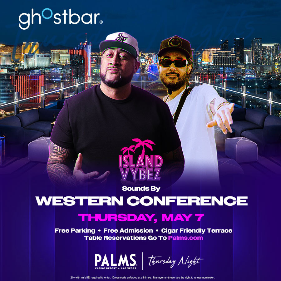 Ghostbar and the Palms Casino Resort presents ISLAND VYBEZ, featuring Western Conference DJ's. Big Body Cisco & Westafa return to the rooftop at Ghostbar. $10 Uncle Ed's Vodka Cocktails 9pm - 11pm. Bottle features on Uncle Ed's Vodka $150/bottle.