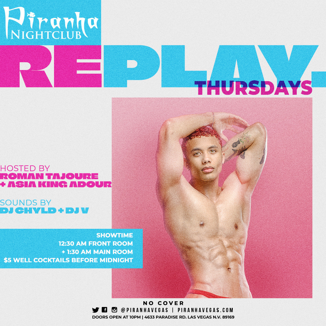 REPLAY THURSDAYS. NO COVER. SHOWTIMES 12:30AM & 1:30AM. SOUNDS BY DJ CHYLD & DJ V.