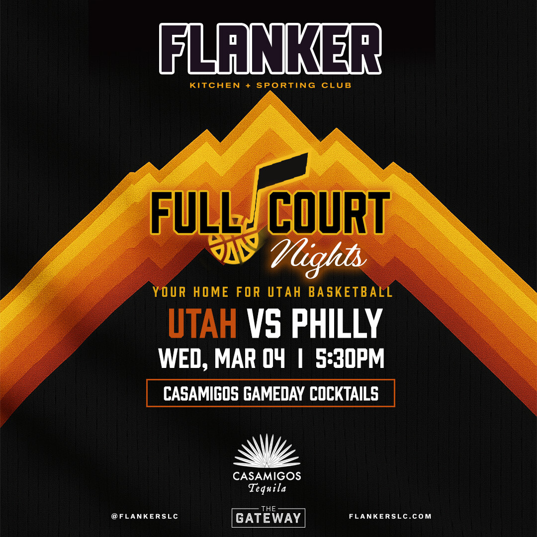 Full Court Nights is your home for Utah basketball. Join us as Utah takes on Philadelphia with every bucket, run, and clutch moment on full display. Experience the game with big screens, high energy, and a crowd that shows up for every possession. Enjoy Casamigos gameday cocktails crafted to keep the momentum high from tip-off to the final buzzer. When Utah basketball is on, this is where game night happens.