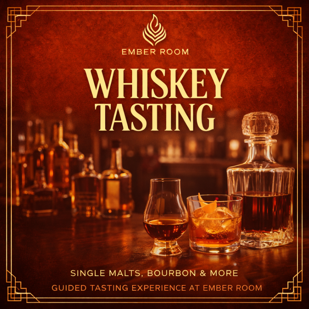 Explore a curated selection of premium whiskeys during this guided tasting experience at Ember Room. From single malts to fine bourbons, enjoy a refined evening of education, flavor, and spirited conversation