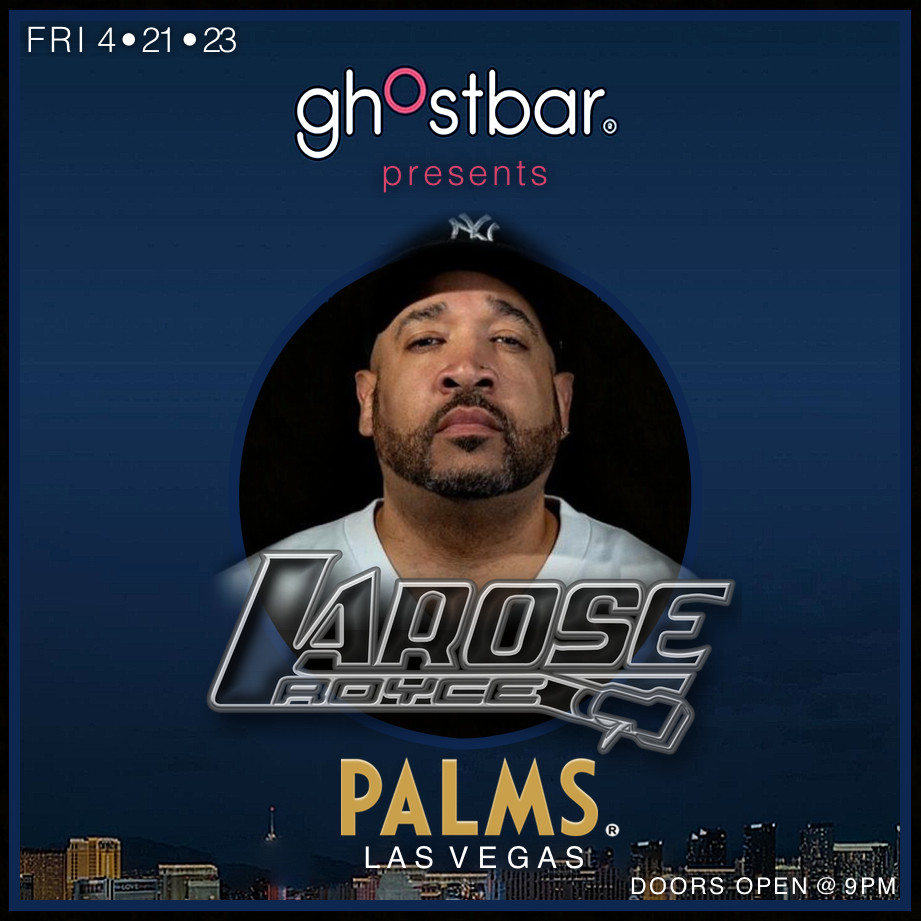 Ghostbar and the Palms Hotel and Casino Resort presents Ghostbar Friday. Doors open at 9pm with cocktail features on our new "Specialty Cocktail" menu until 10pm. DJ LaRose Royce spinning from 10pm to close. Come and enjoy the best view of Las Vegas on our outdoor patio 55 stories above the city. Everyone has a "Ghost" story.