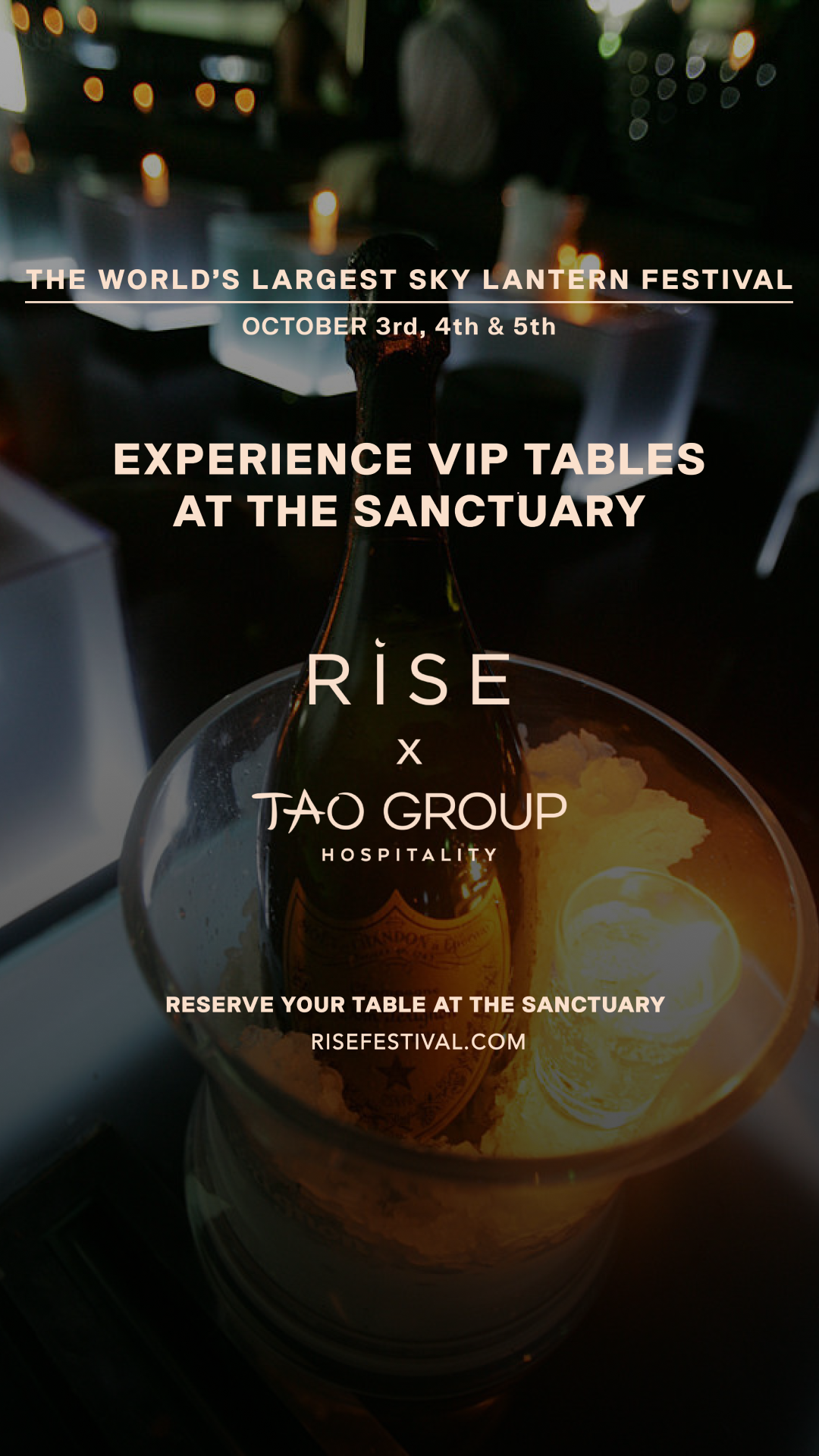 Elevated terraces perched above the crowd for a luxury VIP experience. The Sanctuary offers a new way to experience RISE on private elevated terraces above the crowd, with Tao Group Hospitality's signature nightlife service in the heart of the Mojave Desert.