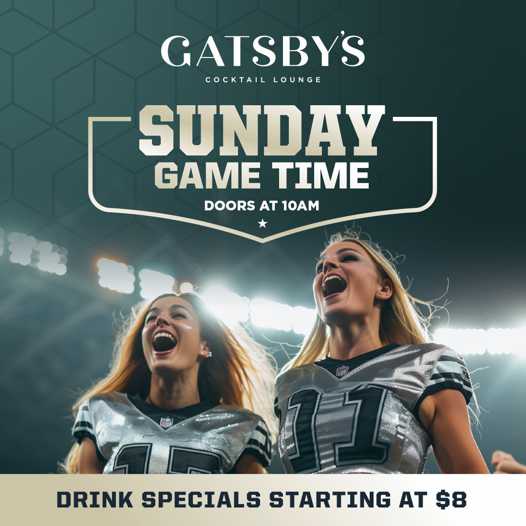 Football Season is alive at Gatsby's Cocktail Lounge. Catch all the action of the NFL as Gatsby's hosts a posh viewing party with game sound on and touchdown winning drink specials. Doors open 10 AM every Sunday!